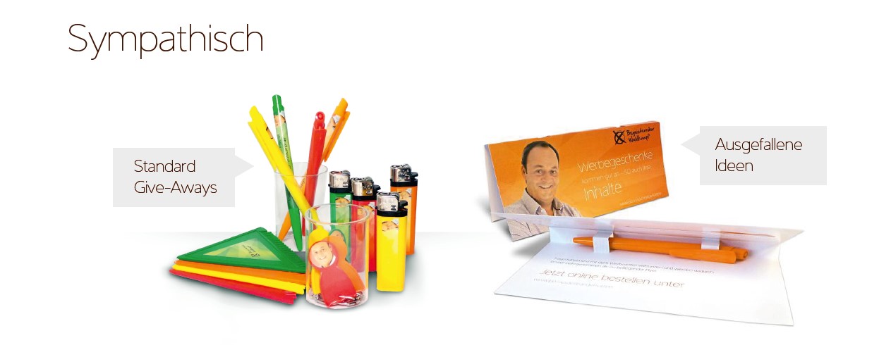 Auch und gerade bei Werbeartikeln machen wir uns über einen sinnvollen Einsatz Gedanken, damit die kleinen Produkte möglichst viel Aufmerksamkeit auf Ihre Kandidat- /innen und Inhalte lenken.